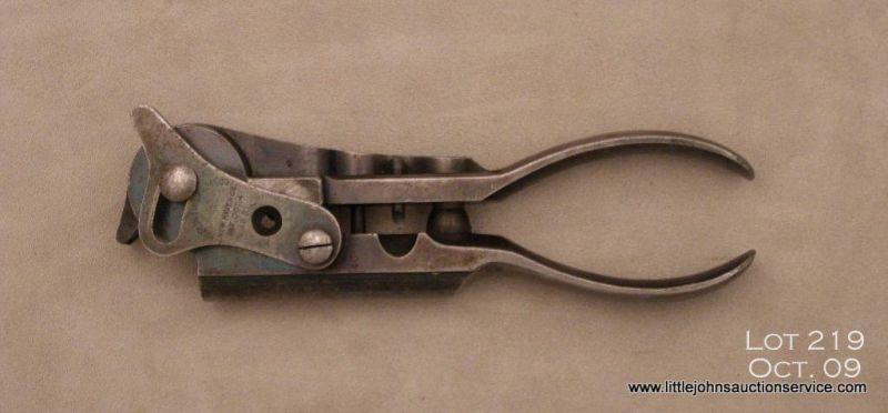 Rare Marlin Arms Co. bullet mold for 40-60 caliber, in overall very good condition showing approx. 40% original blue finish with patent date “Oct. 4, 1881”; the mold cavity shows little use. Est.: $200-$400.