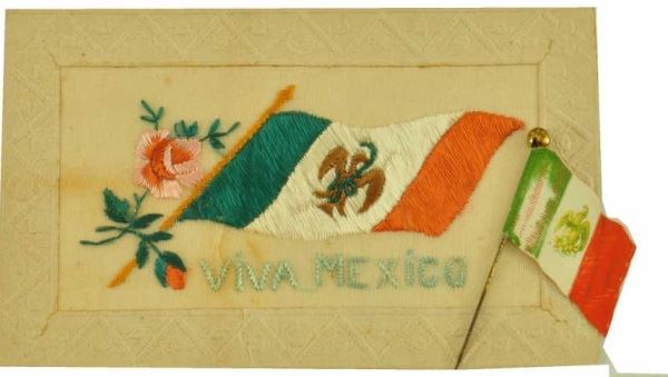 Rare Spanish made "Viva Mexico" silk embroidered post card. Produced during and immediately after the Revolution. Rare and in fine condition.