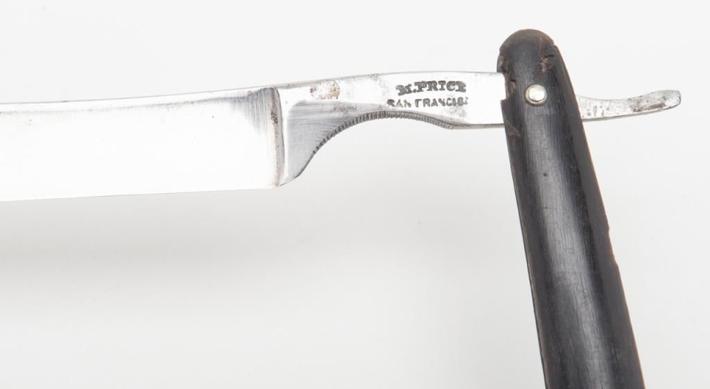 Rare Michael Price, San Francisco-marked straight razor in very good condition; he was a famous knife maker circa 1860-70's. Est. $300-$600.