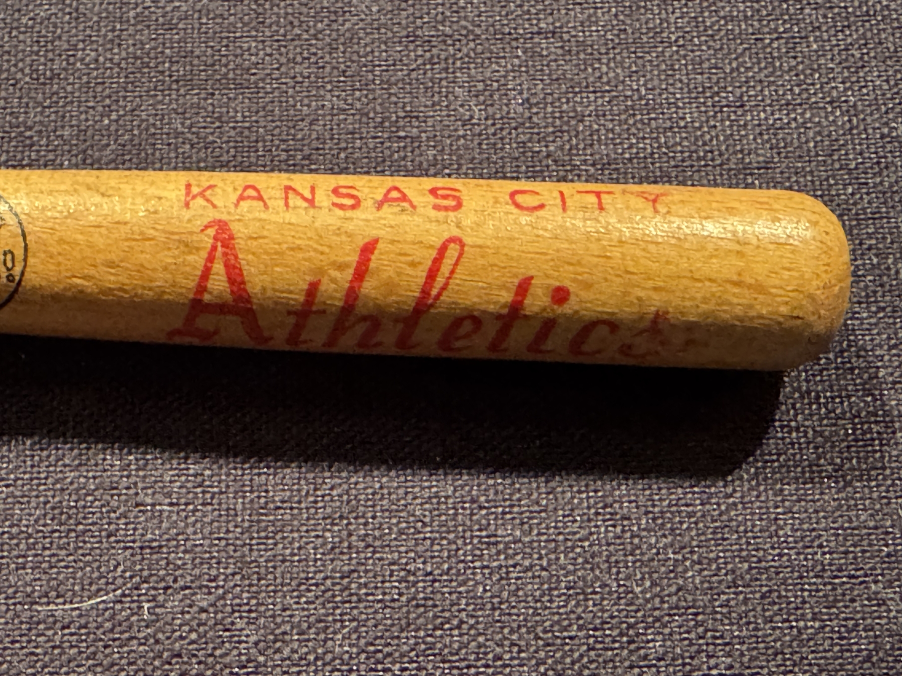 Rare Mini Kansas City Athletics Louisville Slugger Logo Advertising Bat - Mint Condition