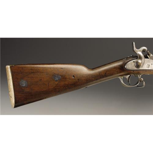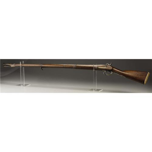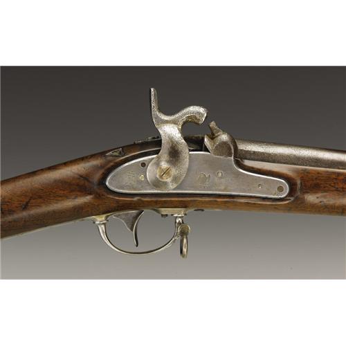 <B>Rare Model 1851 Springfield Armory Cadet Musket.</B></I> This .57 caliber percussion muzzleloader has a 40" barrel (53.75" in overall length), walnut stock with three barrel bands, iron mountings, bayonet lug on barrel's underside at muzzle, “VP” marking on barrel at breech, 1852 on tang, lockplate has "US" and eagle stamped in center, “SPRING/FIELD 1852” behind hammer. With trumpet-shaped ramrod. According to Flayderman, only 4,000 of these diminutive rifles were produced between 1851 and 1853. The Commonwealth of Virginia ordered some 300 of these muskets in 1851 for the cadets at VMI. Although ill-suited for war, some of these are documented to have been used on behalf of the Confederacy. <BR><BR><B>Condition:</B></I> Small triangular chip behind lockplate, glossy natural sheen to wood, iron elements have light pitting; however, excellent finish remains on lockplate. Very good condition.<BR><BR><b>Shipping:</b> Miscellaneous Collectibles, Larg (<a target="_blank" href="http://www.heritageauctions.com/common/shipping.php">view shipping information</a>)