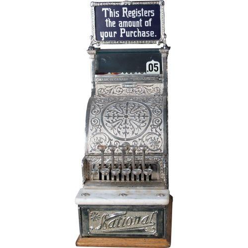 Rare Model "Zero" Brass National Cash Register Restored in Nickle w top sign