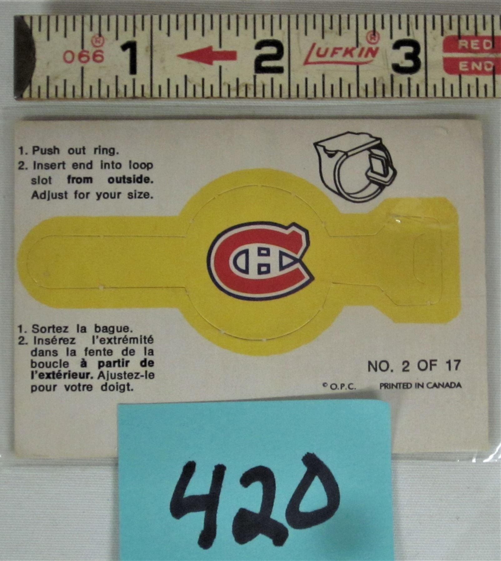 Rare Montreal Canadiens cereal premium paper ring