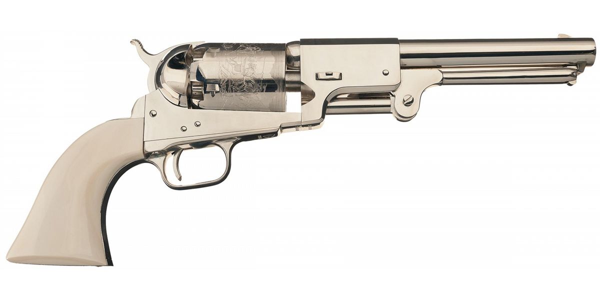Rare Nickel Plated Colt Black Powder Series Third Model Dragoon Revolver with Ivory Grip and Original Box