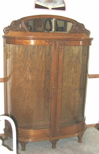 Massive American oak, Victorian "Open Full" double door front. Key locks.4 shelves. A rare find! 69"tx49"wx14"inside measurement. (5-195)