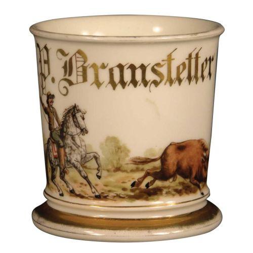 Occupational shaving mug for J.P. Branstetter, Cowboy. No chips or cracks, excellent condition.