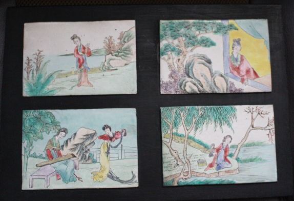 Rare Old Chinese Romantic Landscape Scenes Copper Color Painted on Porcelain Plaque Set (4)