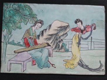 Please see 2nd artwork item created by same artist in next door lot with 4 different painted porcelain scenes on different lot.