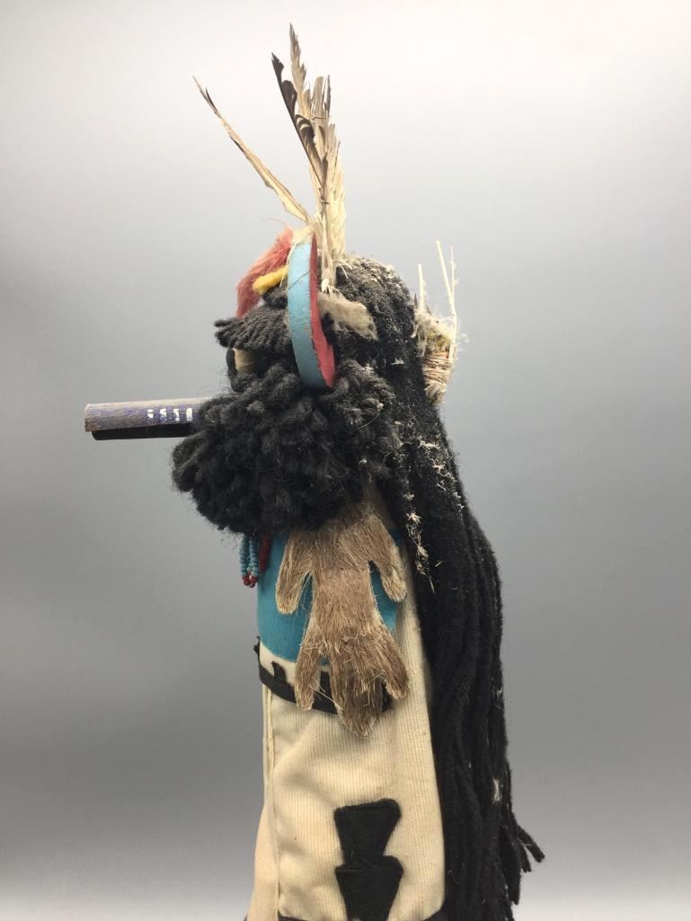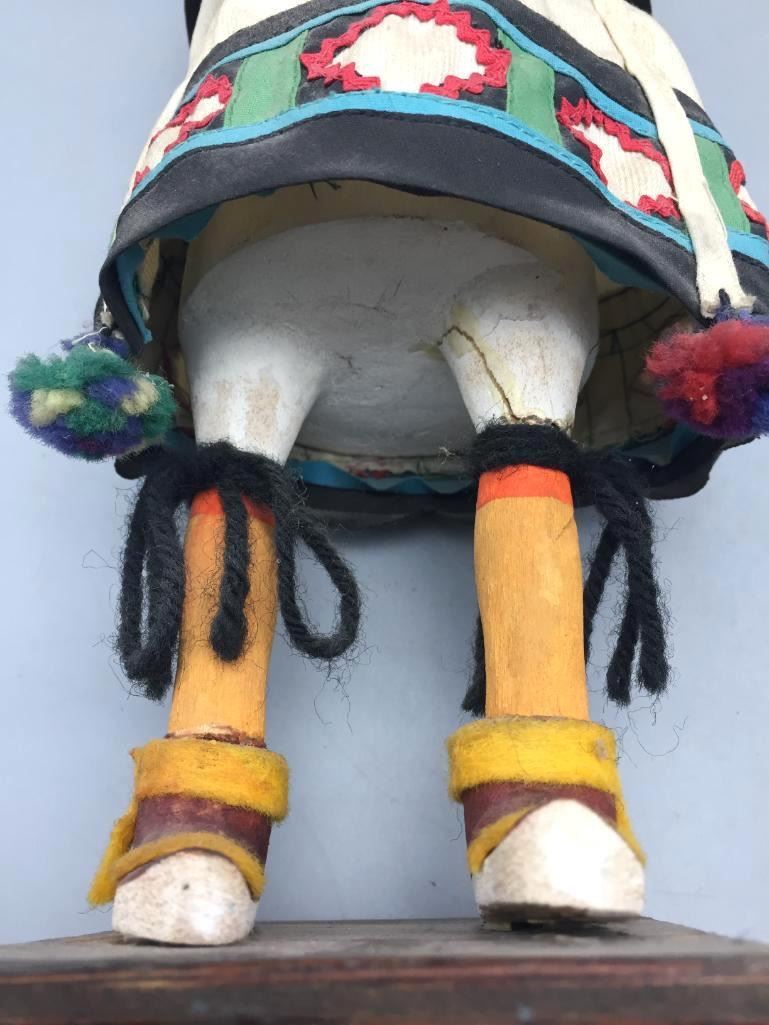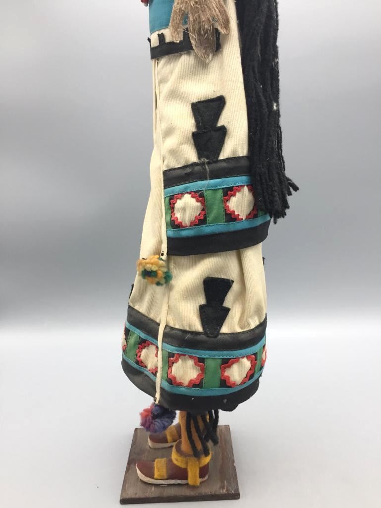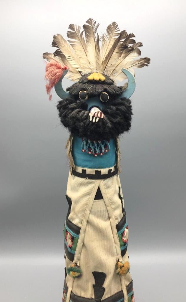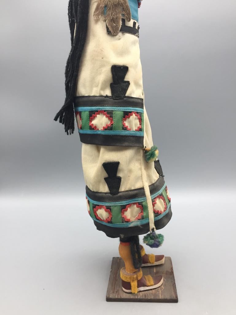 Description: Presented for sale in this lot is an older handmade Zuni Shalako Kachina. It has handmade clothing as well. These older Zuni kachinas are getting harder to find! Maker: Unsigned. Approx. Age: Circa 1950s - 60s. Size: 3-1/2 inches wide x 20-1/2 inches tall. Condition: Pretty good for its age, some wear and fading expected. Please look closely at the pictures - they are an important part of our description. Shipping: There will be a $10 handling / packaging fee for shipping this lot. The actual cost of postage will be added on top of that.