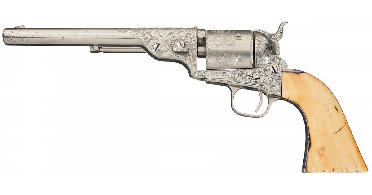 Rare One of Three Known Factory Engraved Documented Colt Model 1871-72 Open Top Revolver with Ivory Grips