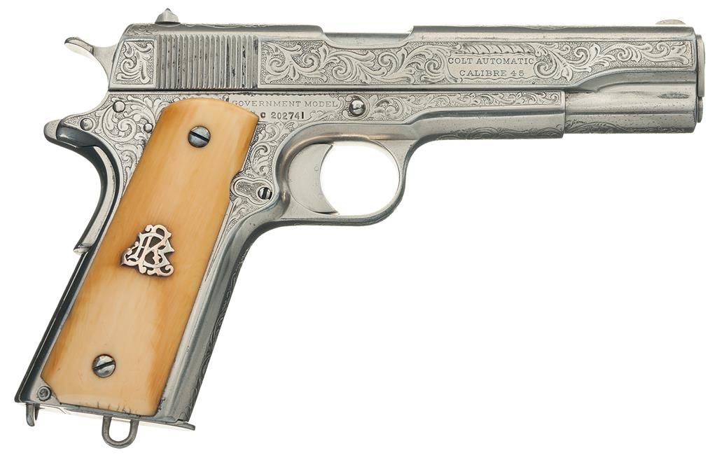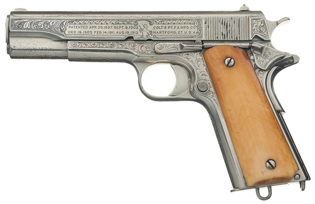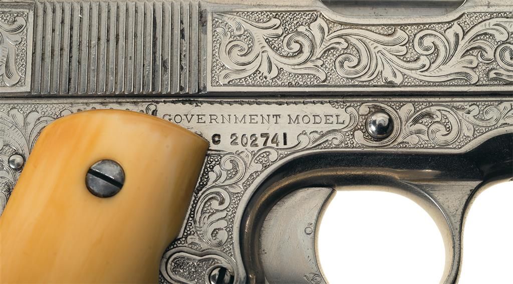 Rare One of a Kind Colt Factory Engraved Military/Commercial Government Model 1911 Pistol with Ivory Grips and Colt Documentation