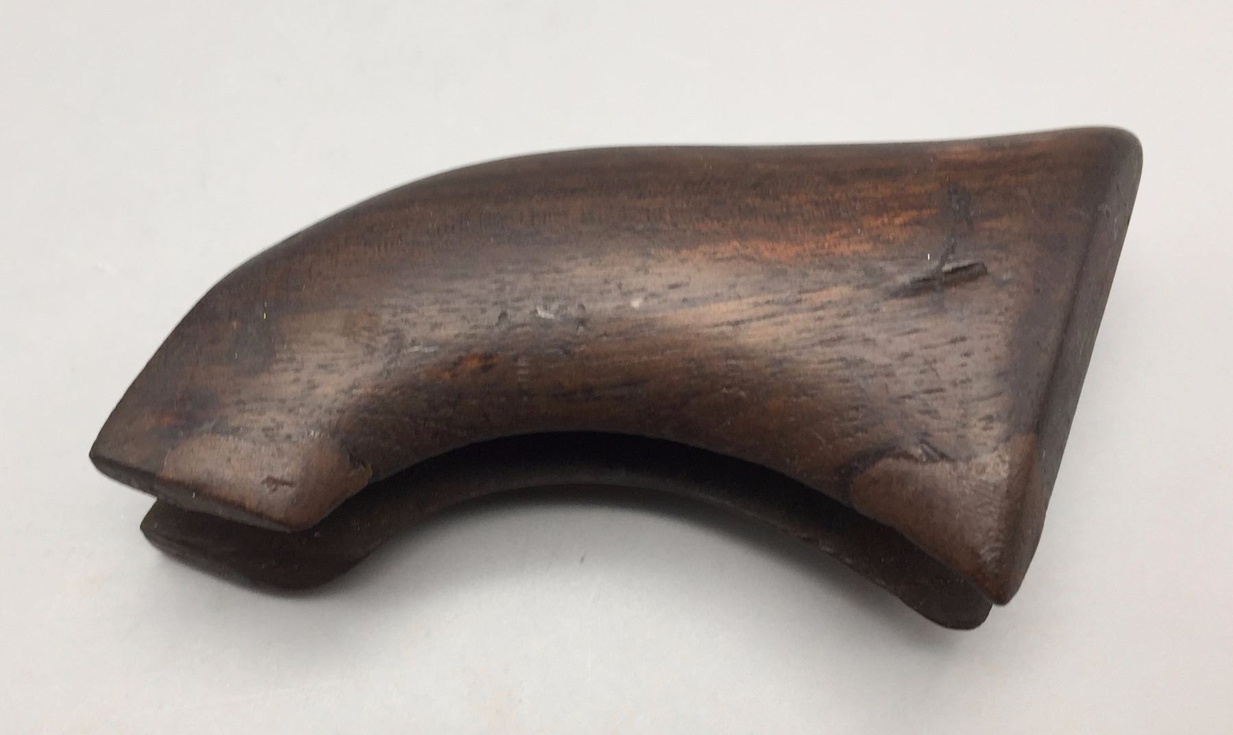 Maker: Colt. Approx. Age: Circa 1850s. Size: Approx. 3.5” long. Additional Info: Rare, original Colt Dragoon wood grips. Condition: Pretty good for its age, normal wear and patina expected. Please look closely at the pictures - they are an important part of our description. Shipping: There will be a $5 handling / packaging fee for shipping this lot. The actual cost of postage will be added on top of that.