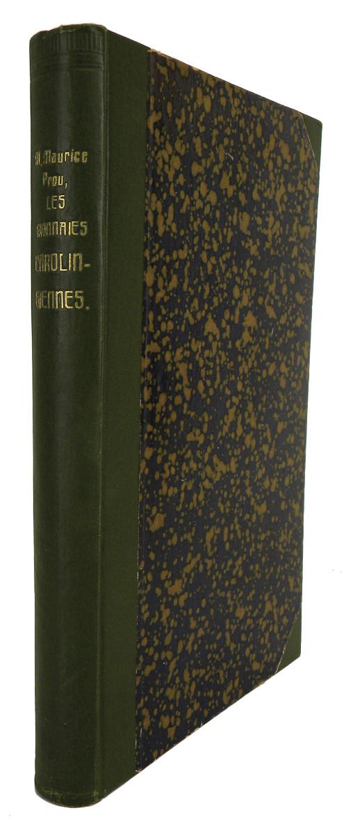 Prou, Maurice. LES MONNAIES CAROLINGIENNES. First edition. Paris, 1896. 4to, contemporary green cloth, gilt, and mottled boards. (4), lxxxix, (3), 180, (4) pages; 23 fine plates. Very good or better. Catalogue de la monnaies françaises de la Bibliothèque Nationale. The very rare first edition; only the second copy we've offered in the last twenty-five years. Important. Clain-Stefanelli 5822.* Grierson 123.