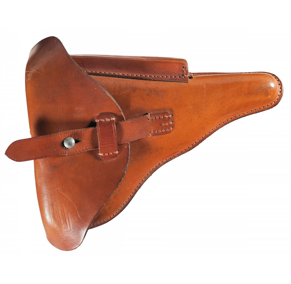 Condition: Excellent plus with 99% plus of the original blue finish overall, with just a hint of wear on the side plate hump. The black plastic checkered grips are also excellent. This Luger has all matching parts to include both magazines as noted above. Mechanically excellent. The holster is excellent, with only some very minor handling marks with tight stitching and clear crisp markings on the back.