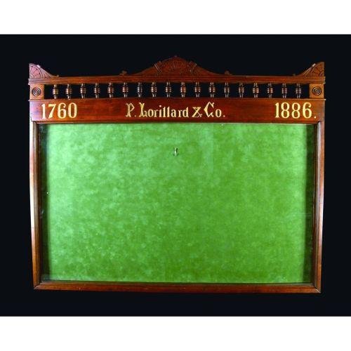 Rare P. Lorillard and Co. wall hanging case. walnut. The only one of these we have seen. You see the cabinet from time to time but never the Wall Case. Excellent condition. 40 X 32 X 3 inches.