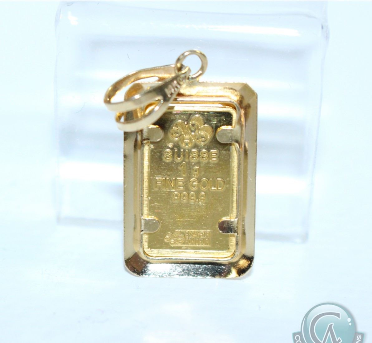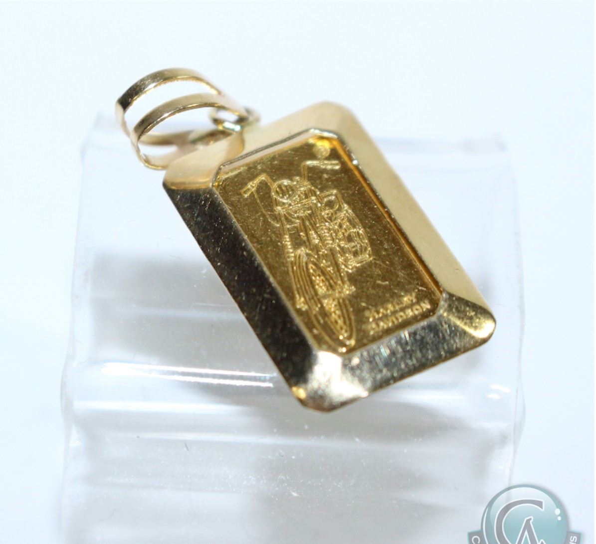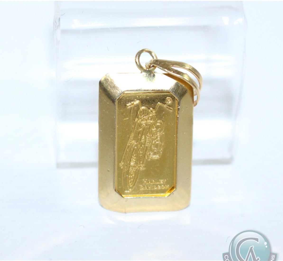 Rare PAMP SUISSE 1gram Gold Bar with Harley Davidson Design in 14K Bezel.