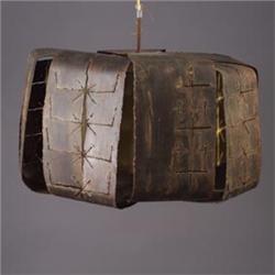 Rare PAUL EVANS hanging light fixture with eight-sectioned pierced sheet metal with copper and enamel patina. 15" x 24" dia. $800 - 1,200