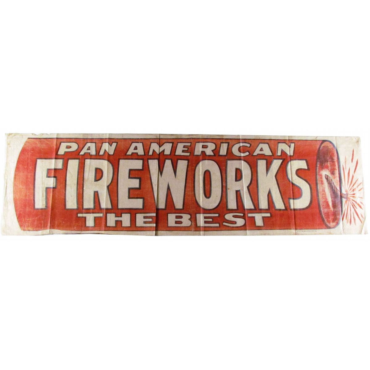 Rare Pan American Fireworks Cloth Banner. Entitled, "The Best". The US Flag Company, Cincinnati, Ohio. Slightly faded otherwise very good condition. 72 X 20 inches.