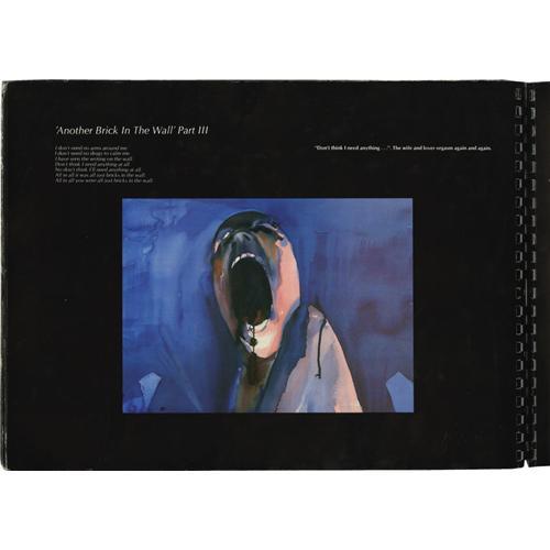 <B>Rare "Pink Floyd - The Wall" Movie Promo Book.</B></I> The 1982 film version of Pink Floyd's seminal concept album was fraught with difficulties during it's production. The film's original format was to be comprised of footage of the band playing live at Earls Court in London, with animation by political cartoonist and illustrator Gerald Scarfe spread throughout the film. Director Alan Parker (<I>Midnight Express</B></I>) found the concert footage to be unusable, and Floyd bassist/songwriter/screenwriter Roger Waters -- who had envisioned himself as the star of the show -- wasn't suitable as an actor. Replacing him with Boomtown Rats frontman Bob Geldof, Parker was able to attract the attention of MGM and ultimately complete the film. (Parker and Waters butted heads the whole time, the former calling it "the most expensive student film ever made" and the latter ultimately disowning it.) This spiral bound book of largely unseen design art for the aborted, original concept for the film is one of less than 100 produced as a selling tool to potential investors, and fewer than 60 are believed to still exist. This particular copy was given to Cleveland Cavaliers founder Nick J. Mileti, who passed it along to his teenage son. The book opens with an introduction to the lead character, "Pink", a brief synopsis of the story and a note: "This presentation is a visual aid to understanding both how the film will be made and how it will look when finished. Of the drawings that follow some are stills from animation already completed but the majority are impressions of live action selected from the script. Alongside the drawings are presented the lyrics of the song which carry the story line as the film is largely mute; and short extracts from the script as clarification. This presentation should be read as an adjunct to the script itself." Printed in full color on 16" x 12" card stock and spiral bound, the includes Earls Court concert photos, design sketches by Scarfe -- many for scenes that never made the final cut -- and storyboard samples. A rare and intriguing snapshot of a work (then) in progress, the book is in Excellent condition with very light wear to the corners and edges.<BR><BR><b>Shipping:</b> Books & Catalogs (<a target="_blank" href="http://www.heritageauctions.com/common/shipping.php">view shipping information</a>)