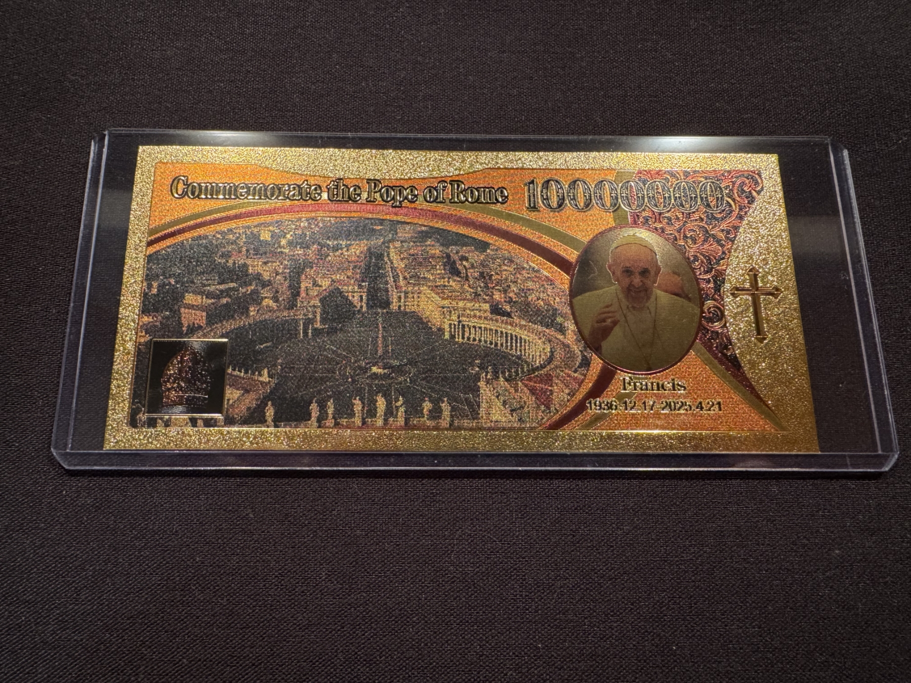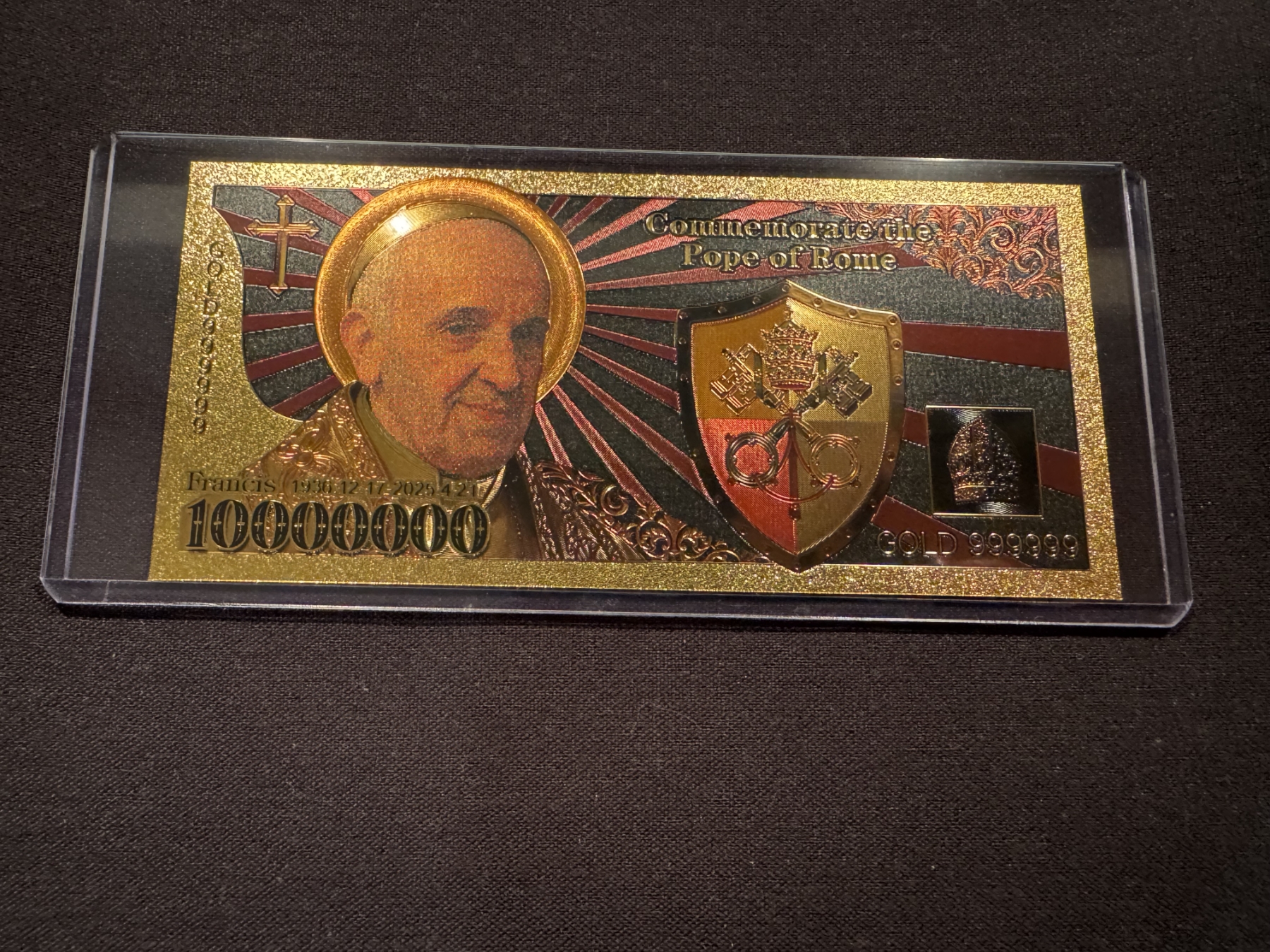 Rare Pope Francis Vatican $10 Million Note - Gold Back .999 - 24K Bill In Protective Holder - Mint Condition