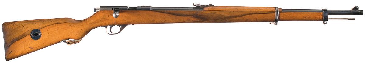 Condition: Very fine. The rifle retains 85% original blue finish with the balance a smooth gray patina with the finish on the receiver and chamber thinning to a brown. The wood is fine with numerous minor dings and scratches, with a minor dent on the forearm (right side) and a minor crack near the bolt handle. The cartouche is clear and crisp. Firing pin needs to be fixed (with lot), otherwise action functions properly.