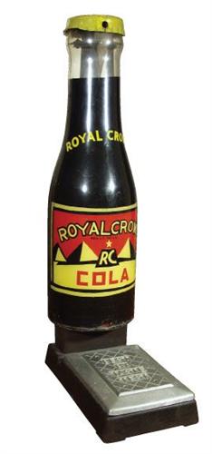 R.C. Cola Scale. Extremely Rare. Coin Operated. Top is cracked and a bit warped otherwise very good original condition. 12 X 45 X 24 inches.