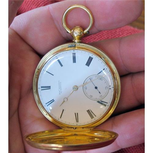 Very rare early 19th GOLD century English pocket watch by Roskell ,Liverpool , 18 carat gold ,White enamel dial with subsidiary seconds. Signed:- Robt Roskell. SN 64135, working properly , in very good conditions.