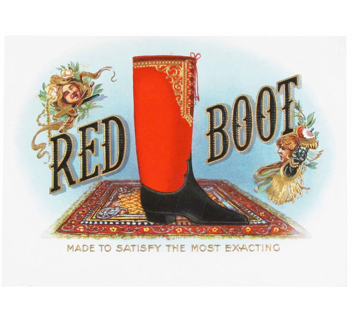 Rare "Red Boot" Cigar Label. Brilliant colors and graphics, near mint condition. 7 1/4 X 5 3/8 inches.