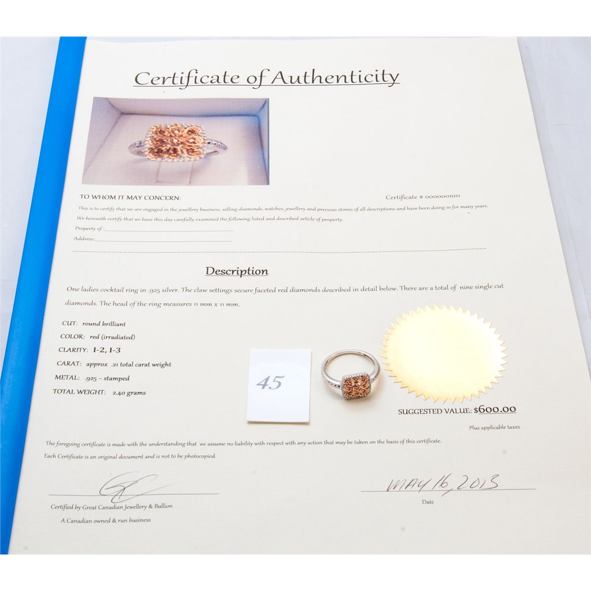 Includes 600 Certificate