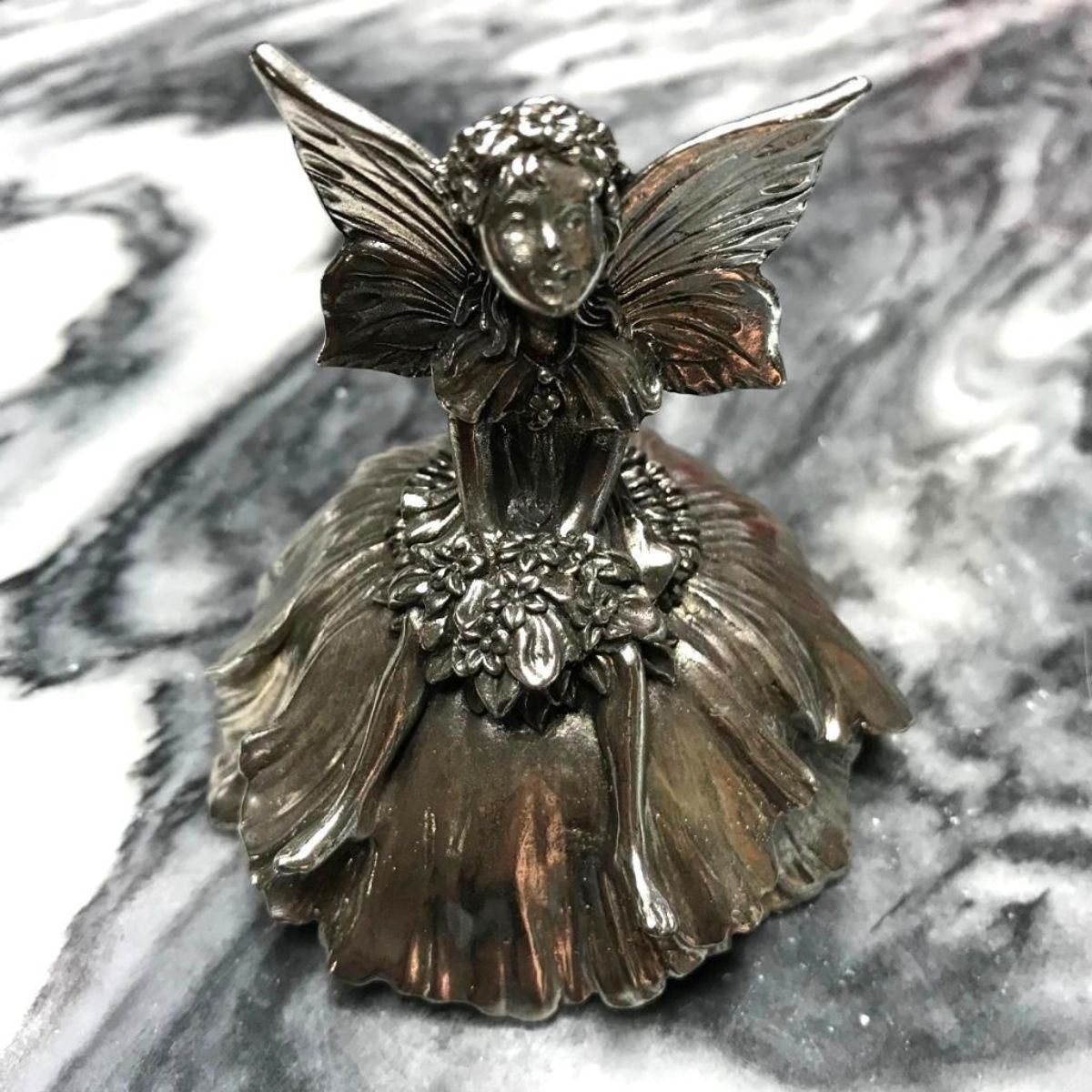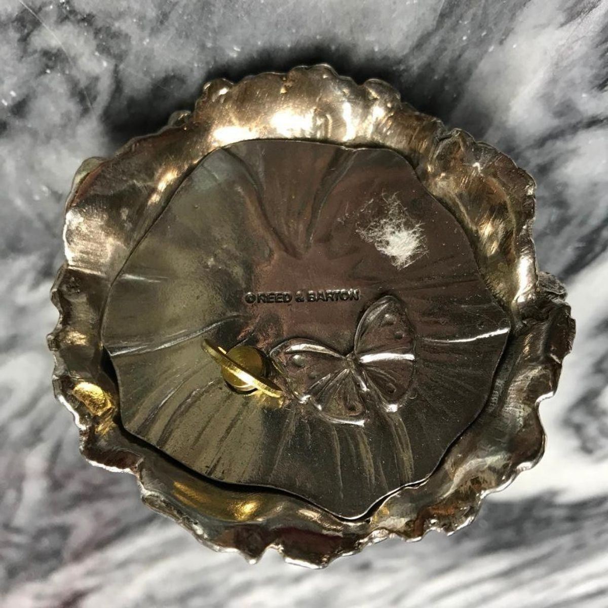 Rare Reed & Barton silver-plate fairy music box. Plays "Beautiful Dreamer" 3" H X 2 7/8" W.Â