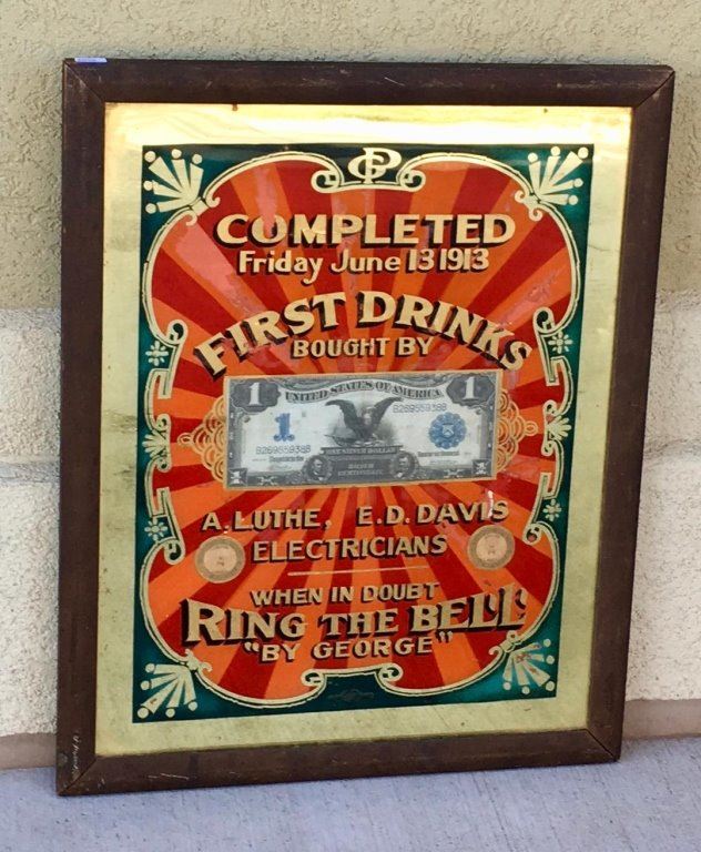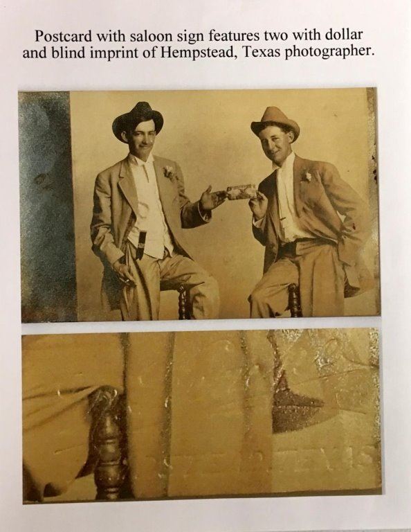 With The First Dollar Bill The Bar Took When It Open It’s Doors With Post Card Of The Two Men That Bought The First Drink. It Was In Hempstead Texas.