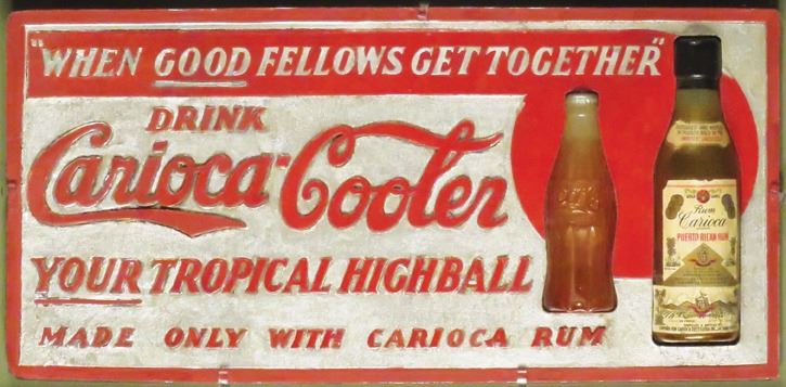 Rare Rum and Coco-Cola "Carioca-Cooler" Embossed Dimentional Sign. Minor perimeter wear otherwise very good condition. Framed in shadow box under glass. 12 X 6 inches image only.