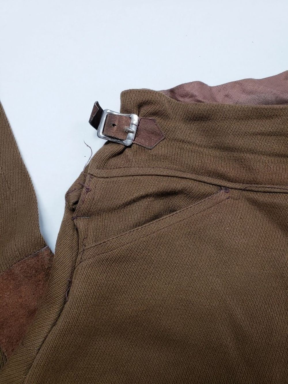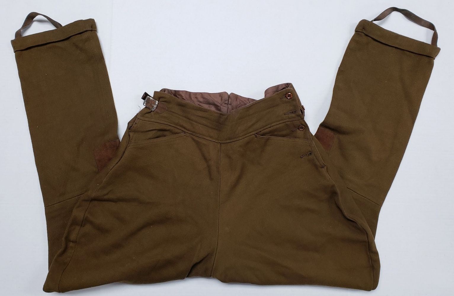 In very good to excellent condition for its age. Its adjustable. Minimum of about a size 28 waist and it can go up to 32-34. Length in inches is about 38".