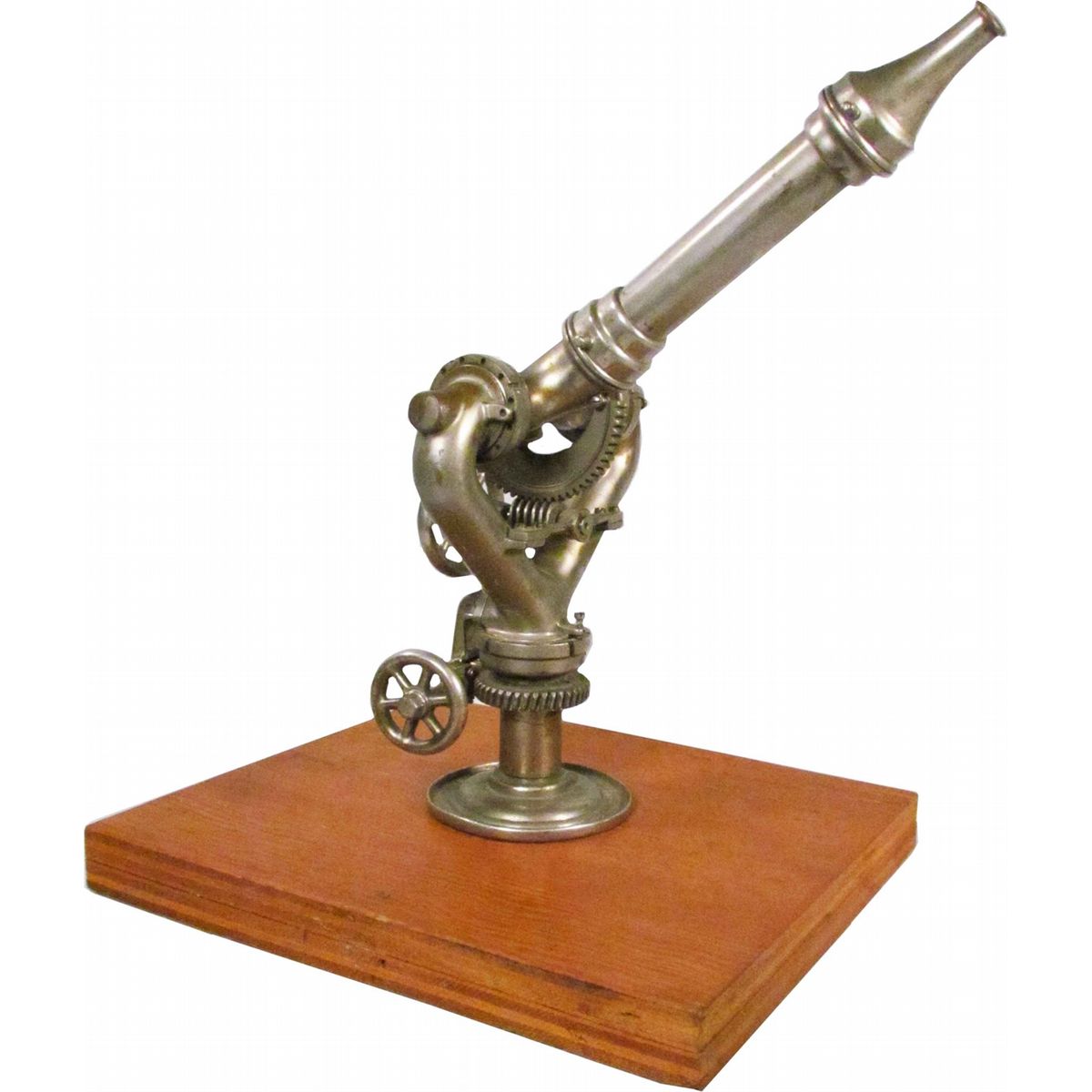 Very Rare Salesman's Sample Deluge Water Cannon. Used on fire boats and largest of fire engines. One of the most detailed and intricate examples we have ever seen. Nickel plated brass. Nozzle shaft 1 3/8 inch diameter X 21 inches tall to tip.