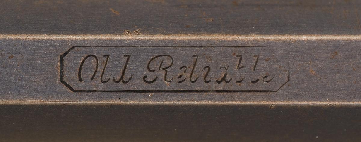 This is a solid example of an extremely rare Sharps Model 1877 rifle with blued barrel, casehardened receiver, lock plate and lever and smooth oil-finished stock and forearm with a checkered iron buttplate. These rifles were made with a ground down Model 1874 action, lock plate and breechblock to be as light as possible and facilitate the use of heaviest barrel that was consistent with the ten pound weight limit for Creedmoor rules target shooting that required rifles to weigh ten pounds or less and have a single trigger, and metallic sights. Only 75 of these rifles were manufactured, serial numbered D1 to D75, 29 in this configuration and all were sold to J.P. Lower, Denver, Colorado. Sharps 1880 catalog referred to these rifles as "Special Model 1874" rifles. The top barrel flat is marked "Old Reliable" in a box and "SHARPS RIFLE CO. BRIDGEPORT, CON" ahead of the rear sight and "CAL 40 2 1/2" on the left flat at the breech. The bottom flat is marked with the numbers "1" and "16". The serial number "D 16" is marked on the upper tang. The barrel is equipped with a small blade front sight on a dove tailed base and folding rear sporting sight absent of graduation markings and marked with the three line Lawrence patent marking on the base. One of the upper tang screws is absent.
