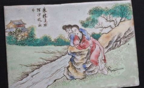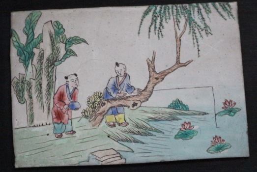 Red, Green, Blue primary Color Painted Scenes on White Porcelain Plaques