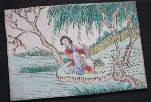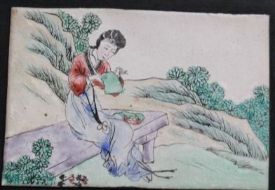 Please see 2nd artwork item created by same artist with 4 different painted porcelain scenes on different lot.
