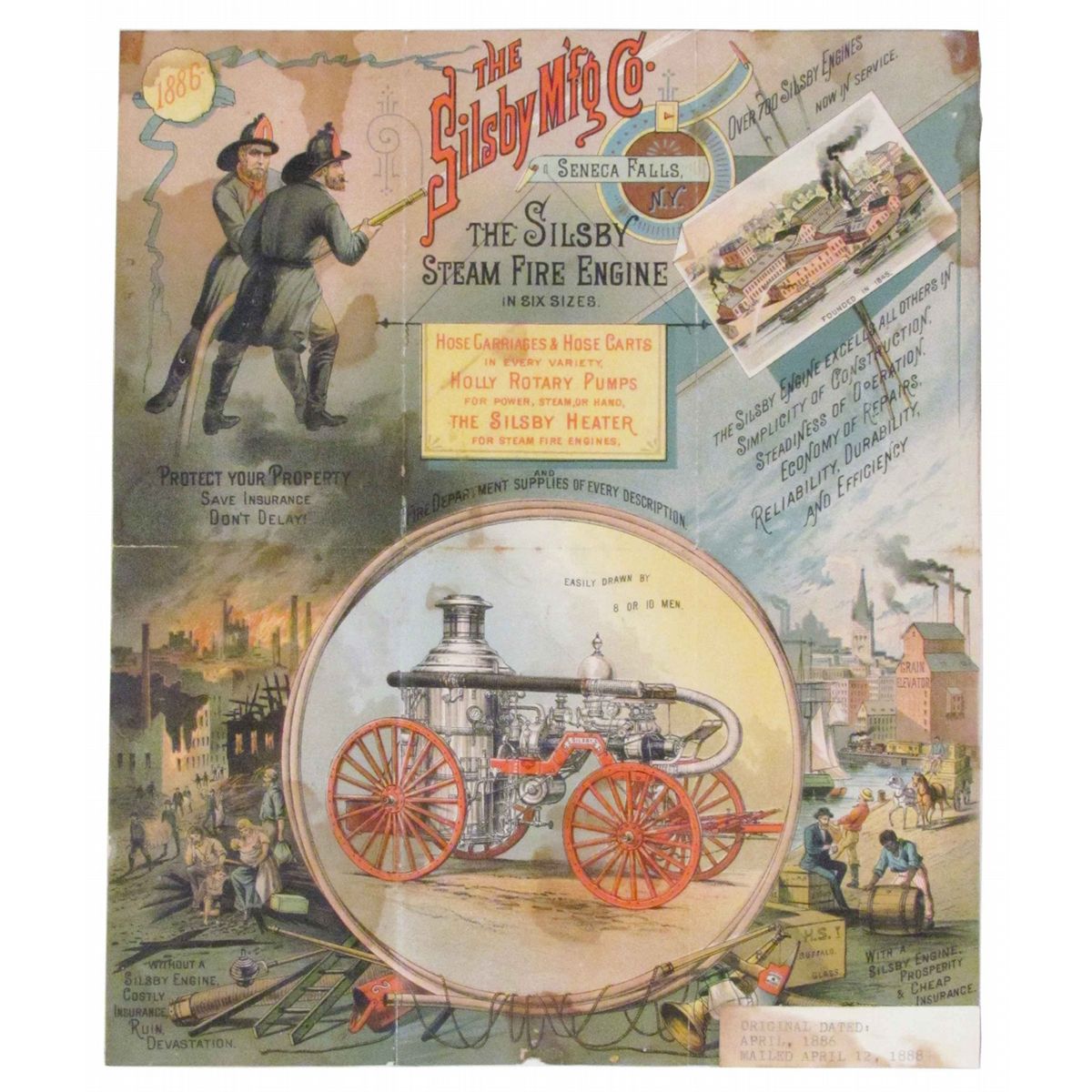 Rare Silsby Steam Engine Advertising Print. Great color and graphics. Staining around perimeter, fold marks, trimmed otherwise good condition. 10 X 12 inches image only.