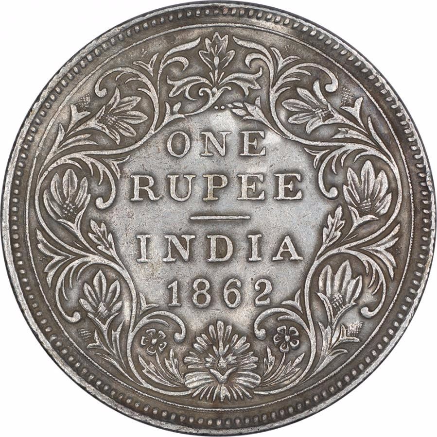 Rare Silver One Rupee Coin of Victoria Queen of Bombay Mint of 1862.
