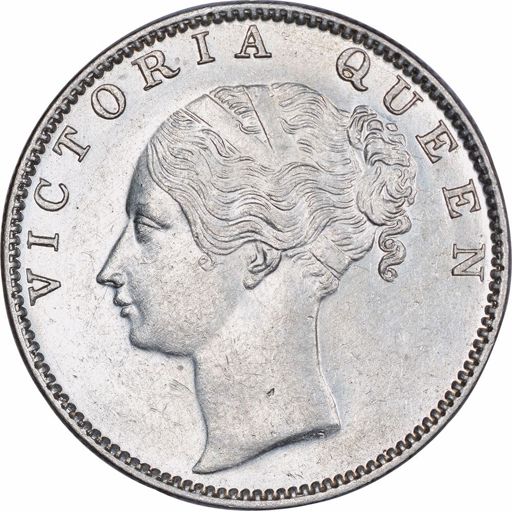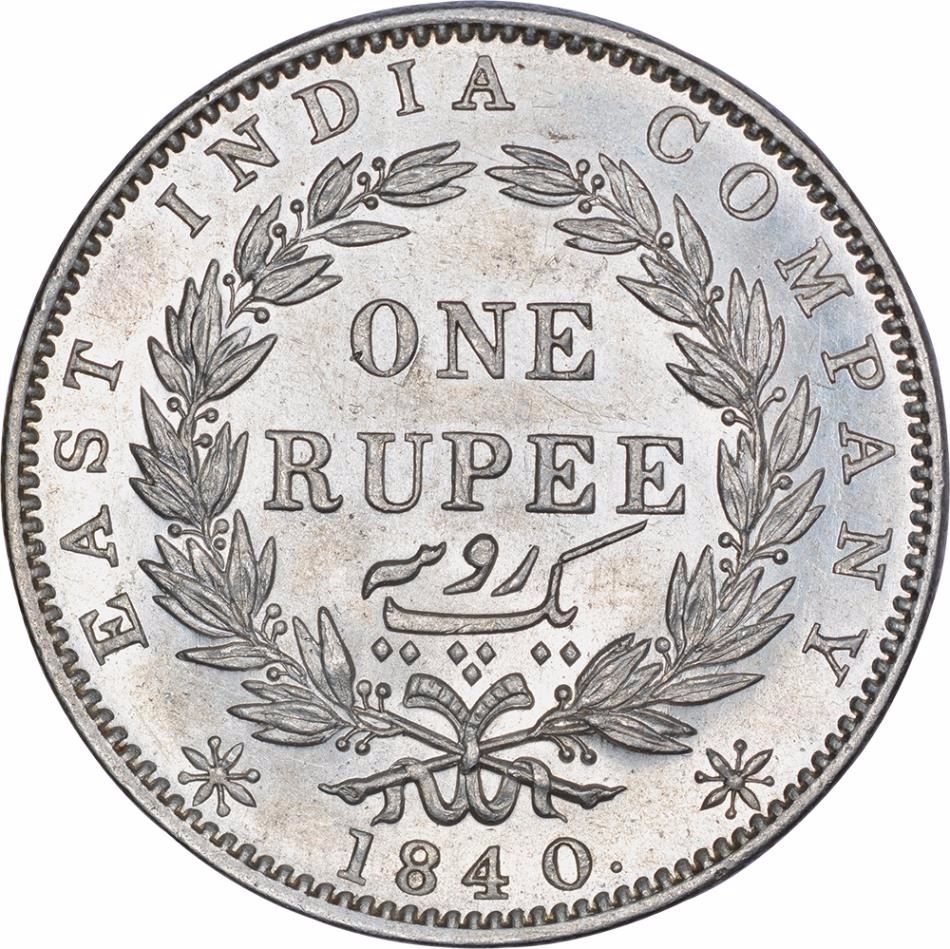 1840, Victoria Queen, Silver Rupee, Madras Mint, S incuse, M raised in ribbon, 35 berries (20L+15R), Unlisted in Pridmore, UNC, Very Rare.