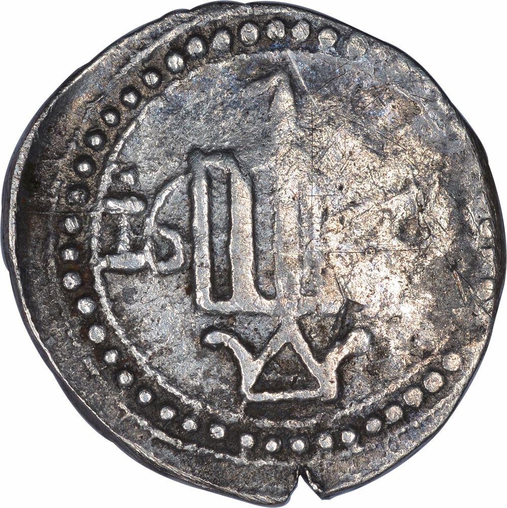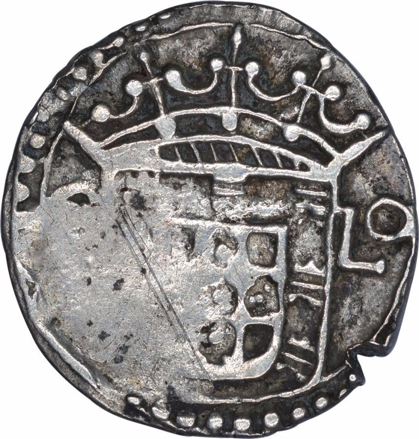 Indo-French,Felipe III, Silver Tanga, Obv: crowned shield, Rev: gridiron of st.lawrence, 2.40g, 15.67mm, about very fine, Rare.