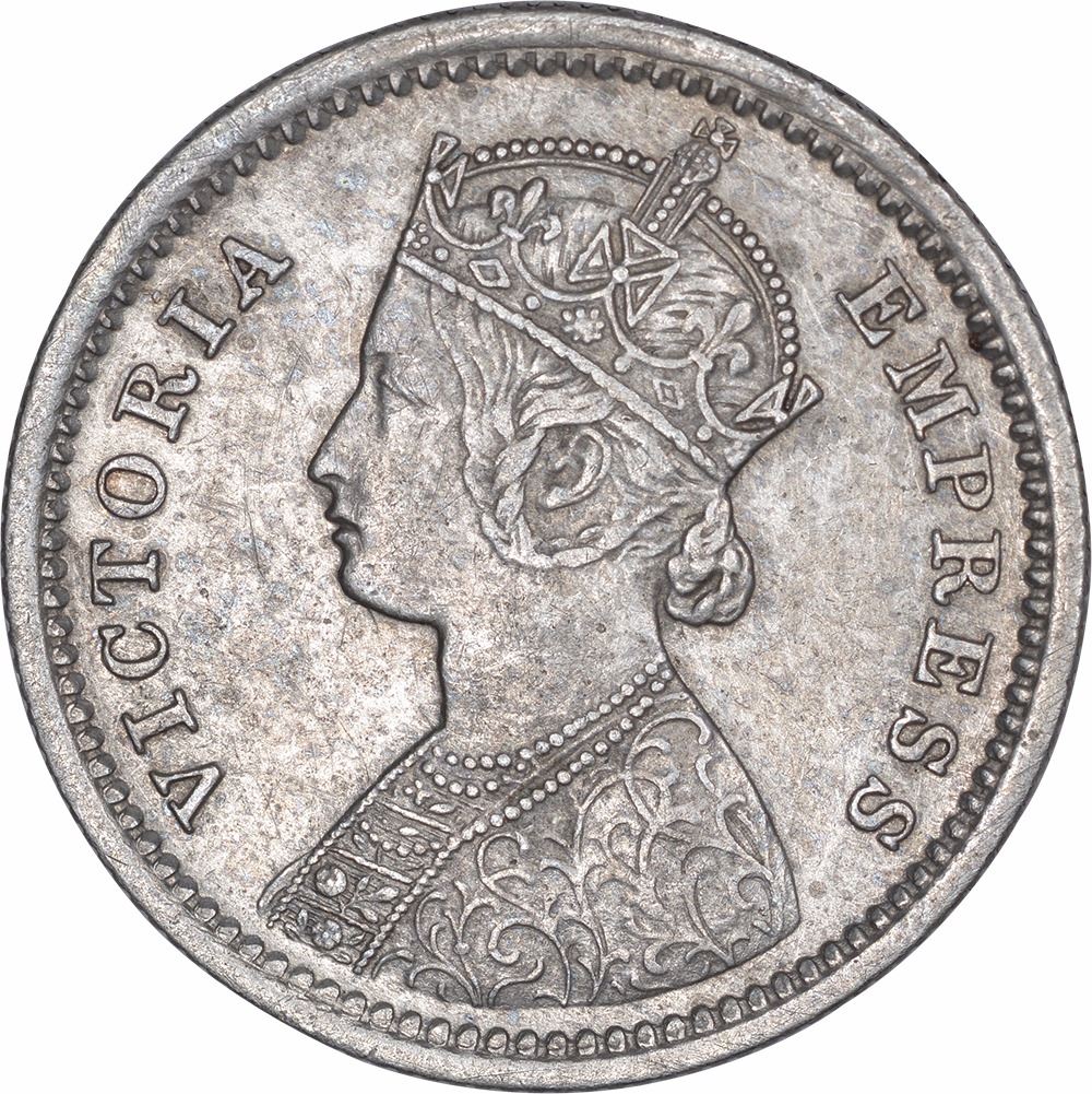 Rare Silver Quarter Rupee Coin of Victoria Empress of Bombay Mint of 1877.