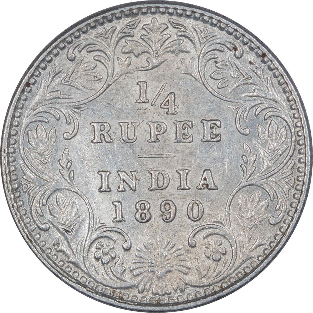 Rare Silver Quarter Rupee Coin of Victoria Empress of Bombay Mint of 1890.