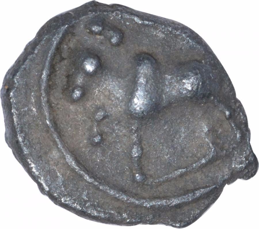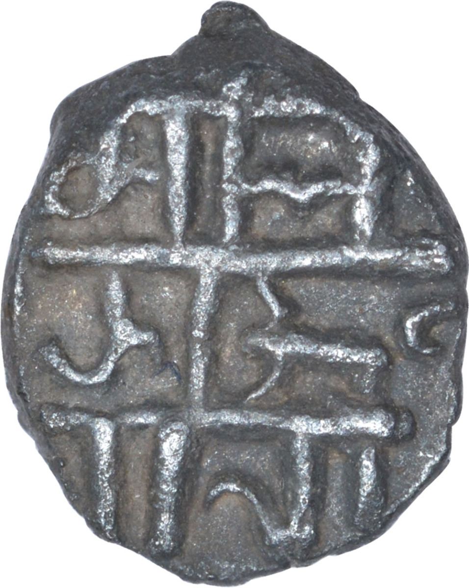 Vijayanagara Empire, Mallikarjuna, Silver Tara, Obv: bull walking to left, Rev: devanagari legend " malli kar juna", 0.30g, 5.70mm, about very fine, Rare.