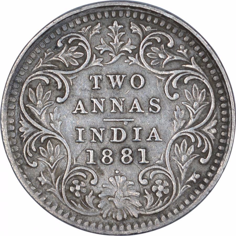 Rare Silver Two Annas Coin of Victoria Empress of Bombay Mint of 1881.