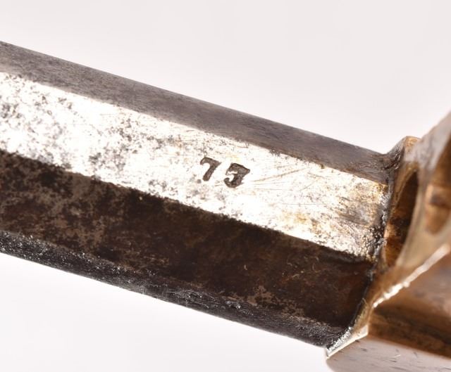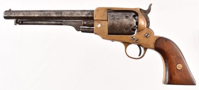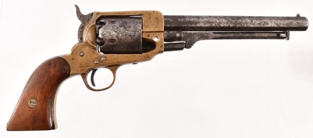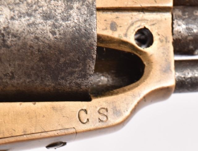 Serial no. 77 .36 caliber percussion revolver. Approximately 7" octagon barrel. Marked "CS" on brass frame. Acquired by Rourke in 1970.