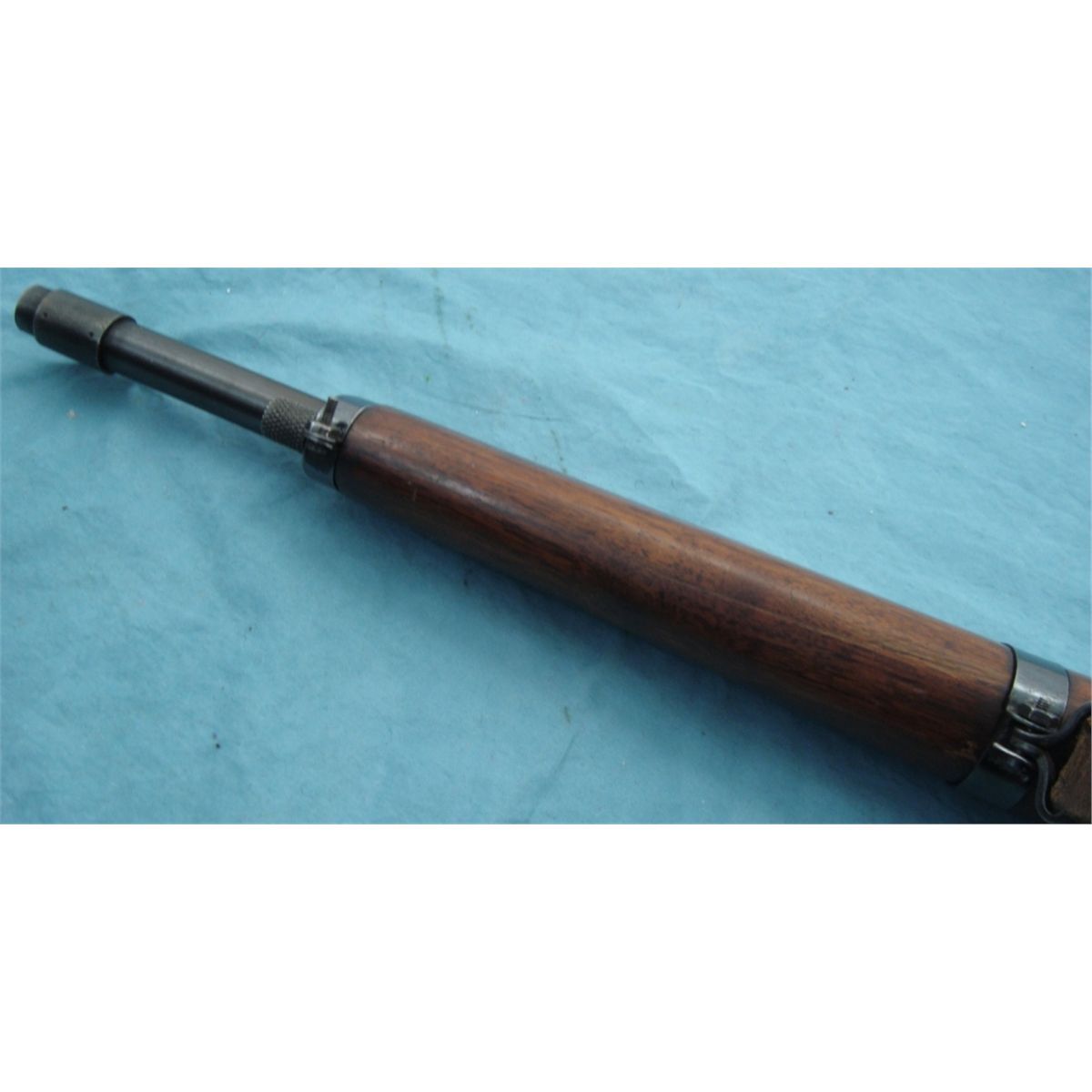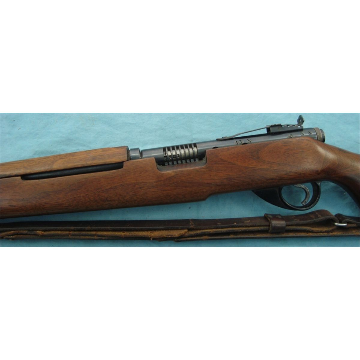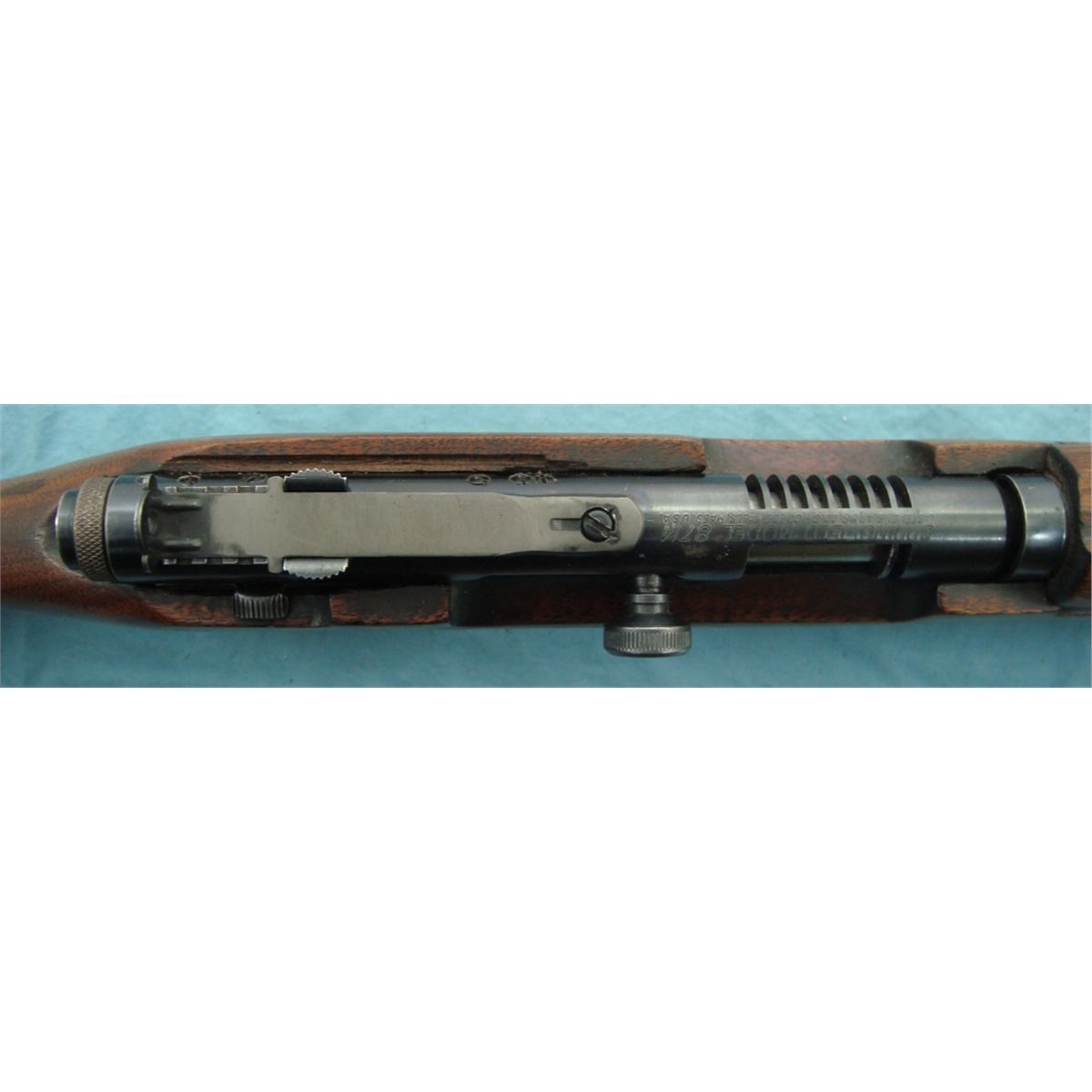 #NSN; 22 cal. w/full military style wood & front sight. It was made to resemble the M-1 Garand Military Rifle. Tube feed w/metal military style butt plate & leather sling. In very good overall condition.