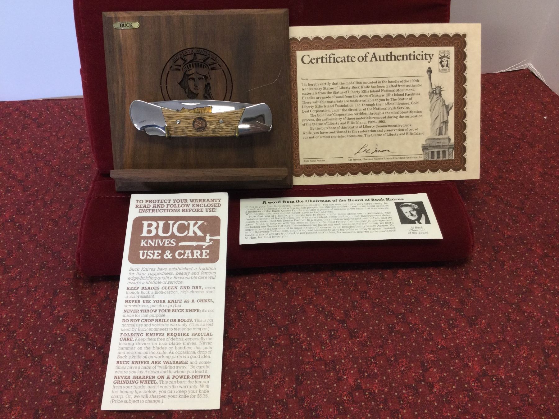 You are bidding on a limited edition Buck Pocket Knife, serial #4110/5000 made from material from The Statue of Liberty, sold with a COA and comes in original, in mint unused condition