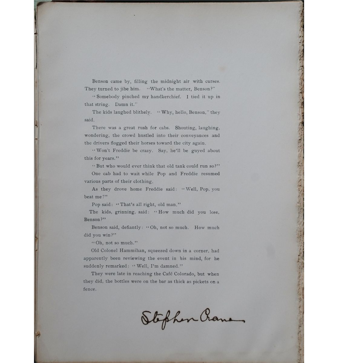 Stephen Crane was one of America's great realistic writers, and his works have been credited with marking the beginning of modern American Naturalism. His Civil War novel The Red Badge of Courage (1895) is a classic of American literature that virtually every schoolchild reads. Tragically, Crane died young at the age of 29, and his autograph is extremely uncommon.