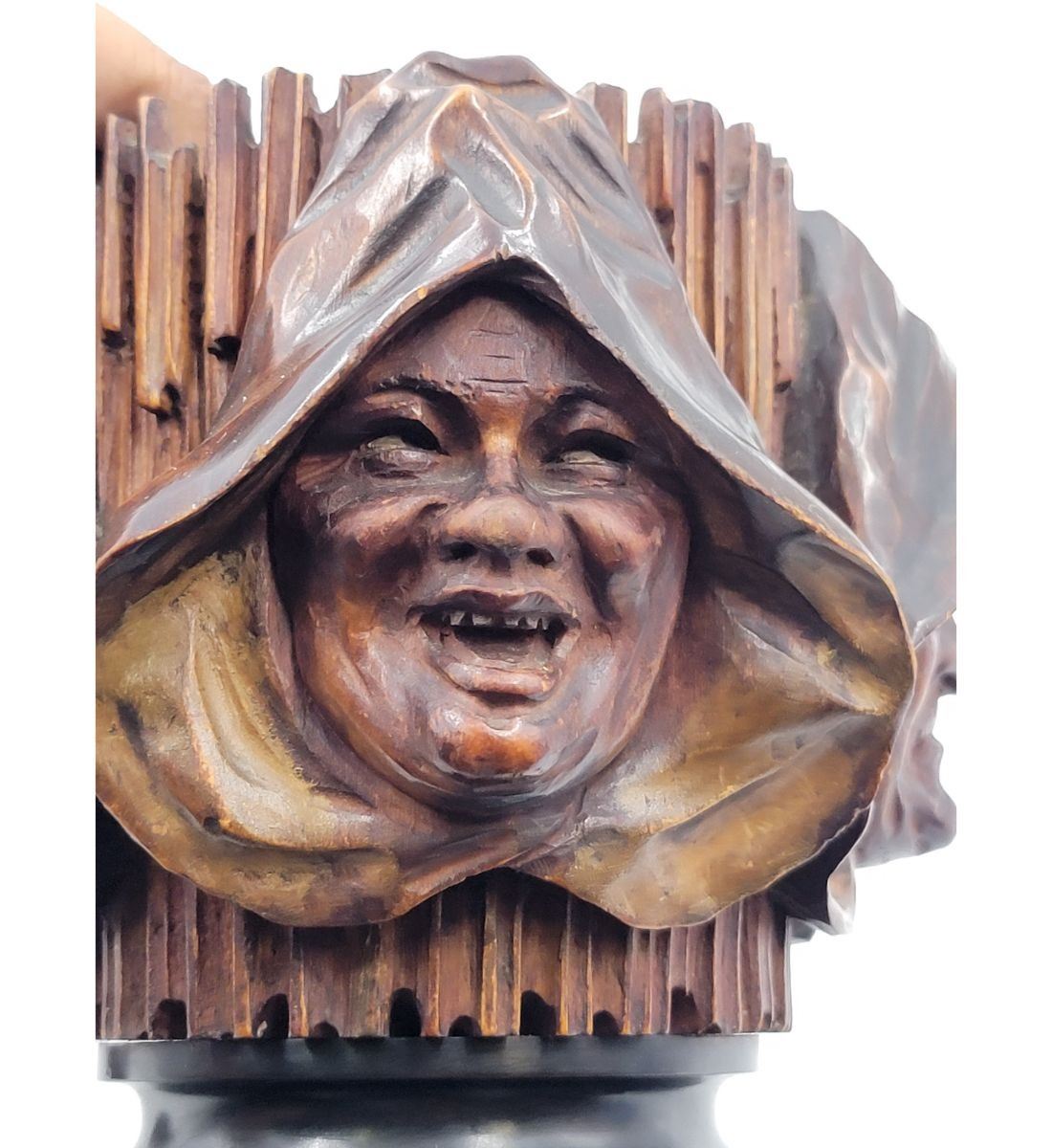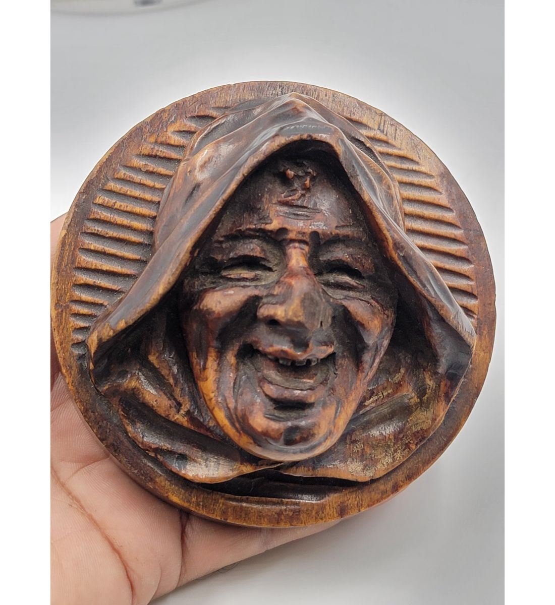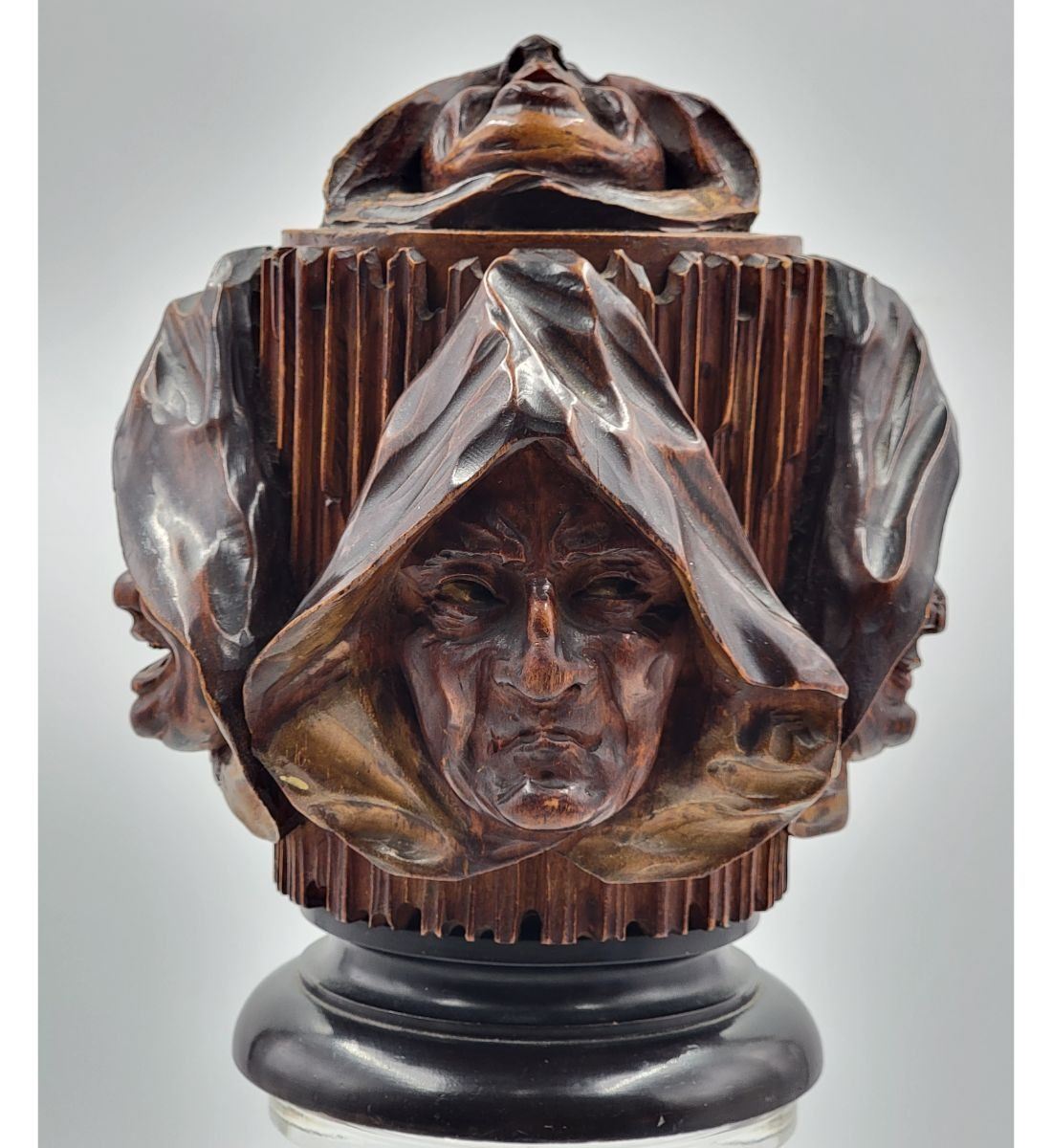 RARE Swiss 17-18th C Black Forrest Carved Tobacco Box In the round. Illustrated in the 1937 EX Pinto Collection. Measures 8" x 7". Provenance: One Person Private Estate Central Florida.